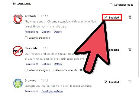 Choose “Tools” then head to “Extensions.” This menu will let you choose which extensions and toolbars to run.