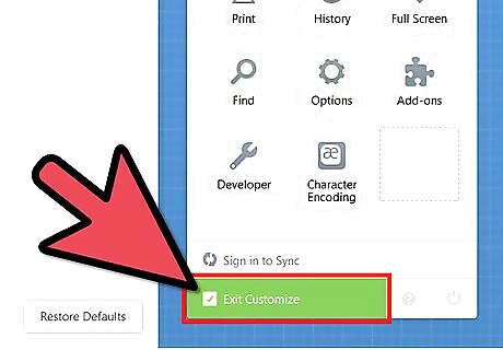 Hit the Green “Exit Customize” button. This should save your new toolbar.