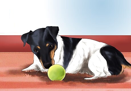 Play on a carpeted surface. When you are playing with an older dog, make sure that you use a carpeted surface. This will provide your dog with more traction and your dog will be less likely to slip or fall while playing. It is important to remember that your dog will likely do anything to please you. This includes overexertion. In order to encourage your dog to play as they age, make sure that you provide them with a safe environment. A carpeted surface can encourage your dog to continue to play even into old age.