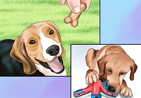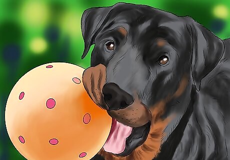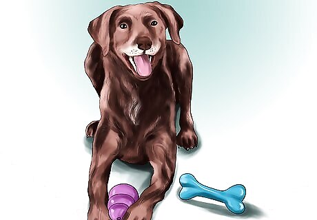 Select softer toys. In order to encourage your dog to continue to play as it ages, you may need to select softer toys made specifically for senior dogs. Older dogs often have weakened muscles and joints, sensitive teeth and jaws, as well as reduced olfactory sensors. As a result, it is important to select toys that can accommodate their aging bodies. There are a variety of options for senior dog toys. For example, senior Kongs are made from a softer rubber and are gentle on the teeth and jaws of senior dogs. Planet Dog also has a complete line of toys, called Old Soul, designed specifically for older dogs. Try and find these types of toys while shopping at your local pet supply store.