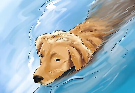 Take your dog swimming. Swimming is another activity that is excellent for senior dogs because it is low-impact and easy on the joints. Providing your dog with an opportunity to swim will help them maintain their cardiovascular health, stimulate muscle development, and is a fun activity. If you have a pool let your senior dog swim daily. Alternatively, you can take your dog to a pond, river or any local body of water. Monitor your dog and make sure they stop swimming once they are tired.