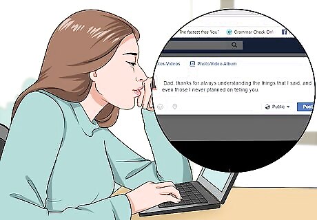 Express positive thoughts on social media. Many people use social media to vent frustration and negativity. However, try to use your Facebook or Twitter page to express positivity. Try to post happy memories of your parents online, or post a Facebook status saying exactly why you appreciate your dad. Remember, this may not be as effective if your parents don't follow you on social media.
