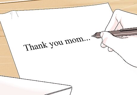 Write a letter. A letter can be a fun way to let someone know how much you love and appreciate them and that you care. This can be particularly helpful if you tend to get nervous with face-to-face discussions. Try writing a parent a thought out thank you letter letting them know you appreciate them. A thank-you card can be sent in direct response to something. You can, for example, send your mom a thank-you letter after she visits for the weekend. You can also send a letter for a parent's birthday, and make a point of expressing appreciation there. However, don't hesitate to write a letter or send a card simply because you're feeling grateful. If you value your parents, it's important to let them know regularly. Don't hesitate to write a letter, or even an email, if you want to let your parents know you care.