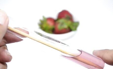 Keep your fingers on the outside of the plastic bag, then mash the strawberry for approximately ninety seconds. Don't be afraid to smash the strawberry well. Overall, the purpose of this step is to break up the cell membranes and enzymes in the strawberry cells.