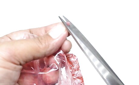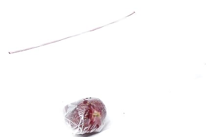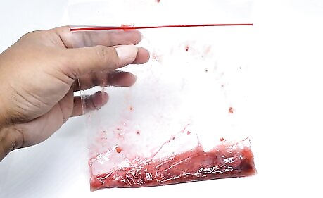 Open the plastic bag, then set it aside. Be careful not to spill the strawberry guts as you open the bag.