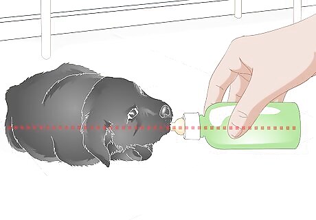 Use supplies from around the house. If you don't have a bottle specifically designed to feed a newborn puppy, then you may have to use items from your home temporarily. If you have a medicine dropper or syringe that can be cleaned and sterilized, then you can try to use that. If you don't have a dropper or syringe, then you will have to use a little spoon. Feeding a newborn puppy with a bottle designed for it will be much, much easier than using a dropper or a spoon. If you have the ability to go get a bottle at your local pet store, do it.