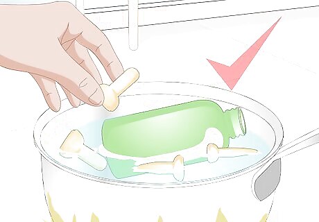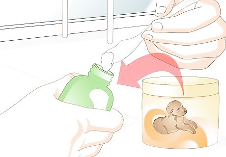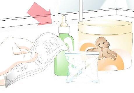 Clean and sterilize the equipment. If you buy a bottle that is made to feed newborn puppies, it should have sterilizing instructions on the packaging. However, if you do not have any instructions, be sure to clean the bottle thoroughly and then rinse it to make sure all soap residue is completely gone. Then place all pieces of the bottle into boiling water for a few minutes to sterilize them. It only takes a few minutes to sterilize a bottle. You do not need to sterilize the bottle for more than five minutes.