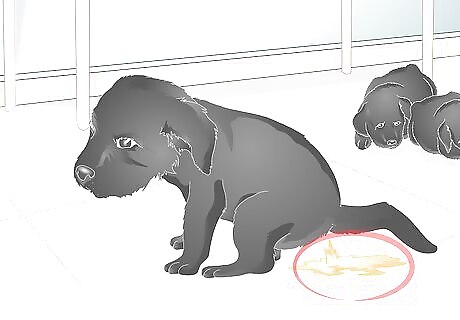 Look for signs the puppy is getting too much food. If your puppy is getting diarrhea then it may be getting fed too much food. At the first sign of diarrhea, try reducing the amount of food you are feeding it slightly and see if that clears up the condition. A newborn puppy with diarrhea can get severely dehydrated quickly. If the diarrhea continues for more than a day, then you should get the puppy looked at by a veterinarian.
