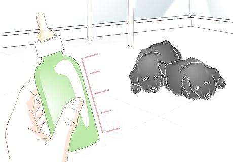 Buy necessary supplies. To feed a newborn puppy you will need a bottle made specially for feeding newborn puppies and milk replacement formula. The bottle and formula can both be purchased at most large pet supply stores or online. You will also need to be able to sterilize the bottle. This means that you will need access to a pan and a stove to heat water on.