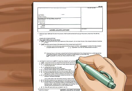 Fill out your “Answer” form. Copy the court information and your landlord's name and address exactly as it appears on the eviction complaint. Then check the box next to any defense that you believe applies to your situation. You may have to provide facts that support that defense. The form you will need is called the “Answer” and it is available here: http://www.courts.ca.gov/documents/ud105.pdf Many of the defenses listed will be considered "waived" if you don't check the box and include them. This means you won't be able to raise that defense later, even if you find evidence that it applies to your case. Be judicious, but if you have a feeling something should be included you should err on the side of including it. You can get assistance filling out this form from a volunteer at a local housing clinic or tenant organization. Sometimes there are also clinics in court where you can get help filing out your form. If you find anything on the form confusing, get help before you file it.