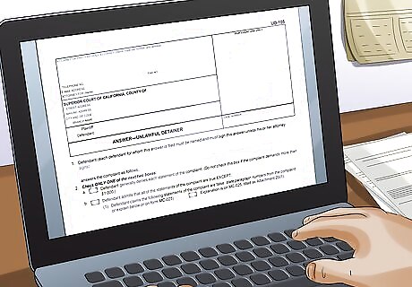 Get a copy of the answer form. You must file a written response to your landlord's eviction complaint within 5 days. If the fifth day falls on a weekend or holiday, you can file your answer no later than the following Monday or non-holiday. You can get a copy of the answer at the clerk's office of the court where your landlord filed their complaint. The name and address of the court will be on the complaint. You can also download a copy at http://www.courts.ca.gov/documents/ud105.pdf. If you do not file this form within 5 days, you will lose your case and the court will enter a default judgment against you. However, keep in mind that this requirement may be different depending on how you were served.