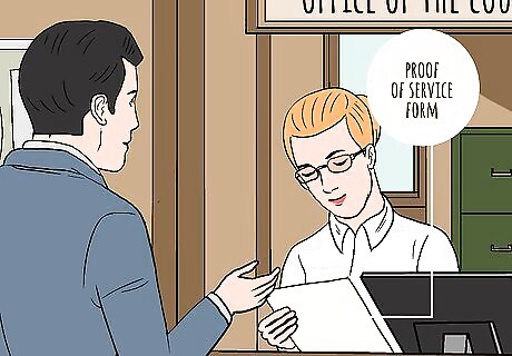 Return your proof of service form to the court clerk. When you file your paperwork to start your court case, the clerk will give you a proof of service form. The person who serves the papers for you must fill out this form. After they've completed the form, they'll typically give it back to you. It is then your responsibility to take it to the court clerk and file it. Make a copy of the completed form for your records before you file it. Keep it with your copy of your other court paperwork. You won't be charged an additional fee to file your proof of service form. In some courts, you don't have to file this form with the clerk, you just have to have it with you when you appear before the judge. The clerk will let you know. There will also be instructions on the form that tell you whether to file it or keep it.