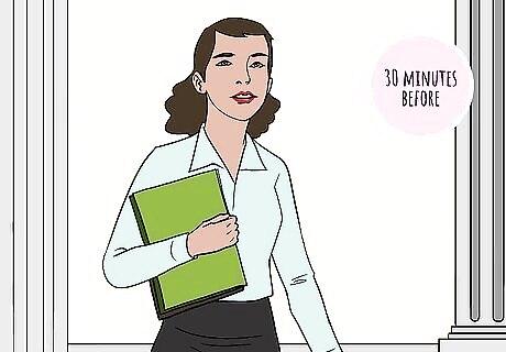 Show up to court at least 30 minutes before the time of your hearing. Get all your materials and clothing ready the night before so that you're not rushing around on the date of your hearing. Get a good night's sleep and leave early enough that you have time to park, get through security, and find the right courtroom. Dress in clean, neat, conservative clothing similar to what you would wear for a job interview. Avoid shorts, sleeveless tops, sandals, and other casual attire. If you're wearing a shirt and pants, tuck your shirt in. When you enter the courtroom, take a seat in the gallery until your case is called. Then you can move to the front of the courtroom. Treat the judge and all courthouse staff with respect and courtesy.Tip: Especially if you have older children, the judge may want to talk to them as well. The court will let you know if your children are expected to come to the hearing with you. Children under the age of 7 or 8 typically would never be questioned by the judge.