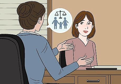 Try mediation if required. Because courts are so busy, many states require parents to work with a mediator and at least make an attempt to come to an agreement on their own. A mediator works with both of you in a collaborative setting to choose custody arrangements that are in the best interests of your children. Even if you're required to try mediation, there's never a requirement that you come to an agreement. If you and the other parent simply can't agree on some or all of the issues related to child custody and support, the judge will decide them for you. If mediation is required by the court, the clerk typically will have a list of mediators approved by the court that you can choose from. For mandatory mediation, you won't have to pay any additional fees for your first mediation session. However, if you spread it out over several mediations, you may have to pay the mediator for the additional sessions.Tip: If you're afraid of the other parent, or if you have a restraining order against them, you don't have to meet in the same room. The mediator will keep the two of you separated. Let them know when you show up for your mediation appointment that you're not comfortable being in the same room with the other parent.