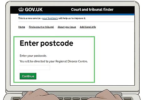 File your petition at your nearest Regional Divorce Centre. The easiest way to file is to complete your petition online at https://www.gov.uk/apply-for-divorce. Your petition will be sent to the Regional Divorce Centre that has jurisdiction over your case. You can also print the petition and mail it to the Regional Divorce Centre yourself. If you're sending your petition through the mail, you can find the address for your nearest Regional Divorce Centre at https://courttribunalfinder.service.gov.uk/search/postcode?aol=Divorce&spoe=start. Use registered mail if you've decided to mail paper copies of your forms, so you'll know when your petition is received by the Regional Divorce Centre.Tip: If you're mailing your petition, send the original plus 3 photocopies. You'll need an additional photocopy if you're divorcing on the grounds of adultery and have named the person your spouse committed adultery with.