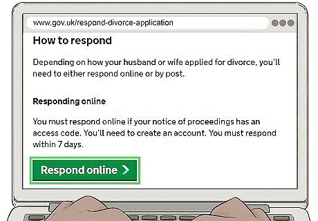Wait for your spouse to acknowledge receipt of the petition. From the date your spouse receives your petition, they have 8 days to file a response, called an "acknowledgment of service." In this form, your spouse indicates whether they agree with the petition or intend to try to prevent the divorce. If you've indicated on your petition that your spouse will pay the costs, they can also object to that. If you filed for divorce on the grounds of adultery and named the person your spouse committed adultery with, they will also have the opportunity to respond and defend themselves.
