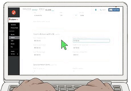 Answer questions to complete your tax forms. The TurboTax website will ask you a series of questions about your work and income in the past year. The answers you provide will be used to fill out your tax returns for you. If you've used any edition of TurboTax in the past, a lot of your information will be automatically filled in by the website. Double-check this information and make sure it's correct, especially if you've moved or changed jobs.