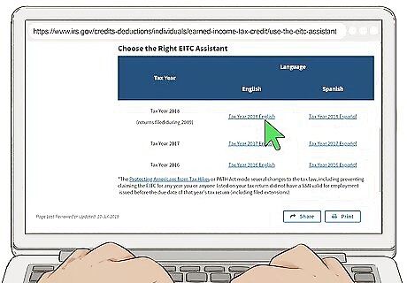 Figure out if you qualify for the Earned Income Tax Credit (EITC). Even if you don't meet the income requirements, you may still be able to use the TurboTax Free File Program if you are eligible to receive the EITC. You can use the IRS's EITC Assistant at https://www.irs.gov/credits-deductions/individuals/earned-income-tax-credit/use-the-eitc-assistant to find out if you qualify for this tax credit. If you got the credit last year, you likely continue to qualify for it as long as there haven't been any significant changes to your income or household size.Tip: You can also use the tool provided by TurboTax at https://turbotax.intuit.com/taxfreedom/ to figure out if you qualify to file your federal taxes for free using the TurboTax Free File Program.