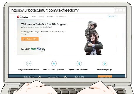 Navigate directly to the TurboTax Free File Program website. If you simply search online for TurboTax, you'll likely end up on the regular page, which means you could end up paying to file your taxes. Instead, go directly to https://turbotax.intuit.com/taxfreedom/. There is also a link to the TurboTax Free File Program on the IRS website at https://apps.irs.gov/app/freeFile/.