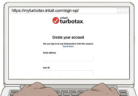 Create an Intuit account or sign into an existing account. If you've used TurboTax in the past, you can use the same account for the Free File Program. You don't need to create a separate account. If you've never used TurboTax before, enter a valid email address and come up with a username and password for your account. Log into your email account so you can quickly verify your email. You won't be able to start your tax returns until you've verified your email.Tip: Even if you've never used TurboTax before, you may still have an existing account if you've used another Intuit product, such as Quicken or QuickBooks.