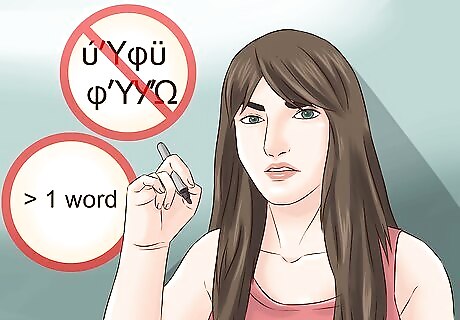 Make your name SEO friendly. These days you want your name to be easily findable when you search it on the Internet. Names that are too common – like Girls – will be lost in search engines because there are millions of entries about other things relating to girls. Thus, your band name should not be a common word or phrase. A band called Harmony or Black won't work well because it would not come up quickly in searches. Some bands with names based on common words – like the Eagles or Kansas – were created before search engine optimization was ever a consideration. Weird spelling can trick people into searching for the wrong thing. So don't get too creative with the spelling. Avoid special symbols like an umlaut or other coding. It can confuse search engines, and sometimes people don’t know how to type it. Using more than one word increases the chances your name can be easily searched (if you use a single word, it needs to be something very unusual).