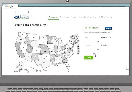 Check bank listings. Most banks run a searchable database of foreclosed, pre-auction homes. You can narrow your search by state and city or county to see a comprehensive listing of each property a given bank is selling. Use an online search engine to find banks with foreclosure listings in your area. Narrow your search by selecting the city or county you reside in.