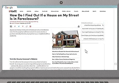 Search online. In the United States, the Department of Housing and Urban Development maintains a comprehensive listing of foreclosed homes in a database that can be easily searched online. Visit https://ushud.com/ if you're searching for a home in the United States. Enter your zip code and browse the listings to see if an address you're worried about has been included in the list. If you live outside the United States, search online for your national or regional housing offices.