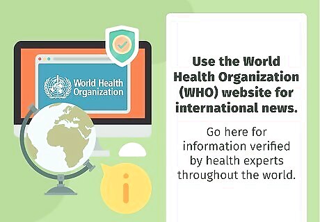 Use the World Health Organization website for international news. The World Health Organization, or WHO, oversees the worldwide coronavirus situation. WHO has monitored the virus since it first broke out, and its doctors have considerable experience with the situation. Go here for information verified by health experts throughout the world. For WHO’s dedicated coronavirus page, visit https://www.who.int/emergencies/diseases/novel-coronavirus-2019. The page has a Situation Report tab where you can read the latest news from WHO. Scroll down the page for videos explaining how you can protect yourself and others from catching the virus.
