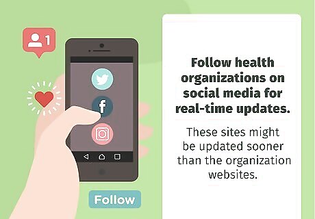 Follow health organizations on social media for real-time updates. Many health organizations like WHO and the CDC have Twitter and Facebook pages where they post information. These sites might be updated sooner than the organization websites, so follow and check these social media pages for the most up-to-date information. Be careful with social media. A lot of false or unverified information can spread quickly. Only accept information from verified, reliable accounts to avoid believing rumors.