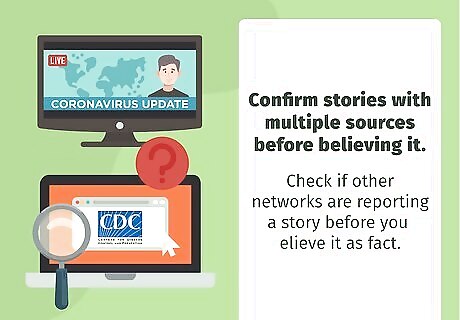 Confirm stories with multiple sources before believing it. Most news networks have access to the same information, so they tend to report on similar news. If only 1 news network releases a story, then that’s a sign it might not be accurate. Check if other networks are reporting a story before you believe it as fact. Better yet, check an organization site like the CDC for similar statements. This can verify the news as true or false. If Fox runs a story one night but no other networks report on it within a few hours, then it’s a good bet that this story isn’t accurate. Even if multiple news networks are running a story but the CDC or a similar organization hasn’t confirmed it, then be suspicious. Sometimes 1 network running a story sets off a lot of speculation in the media, which could spread inaccurate news.