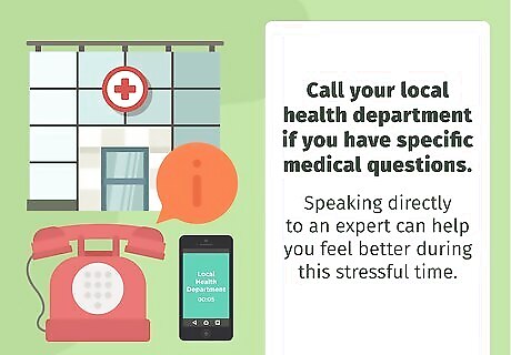 Call your local health department if you have specific medical questions. Your local health department is probably monitoring the situation in your town or city. If you have questions about the virus or what to do if you’re sick, then call the health department for this information. Speaking directly to an expert can help you feel better during this stressful time. Remember that health departments are extremely busy right now, so they may not be able to get to your question right away. It might be faster to check for updates online.