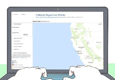 Search sex offender registries. Each state has a sex offender registry. Searching the registry will tell you where the person lives. For example, California's registry is meganslaw.ca.gov/Disclaimer.