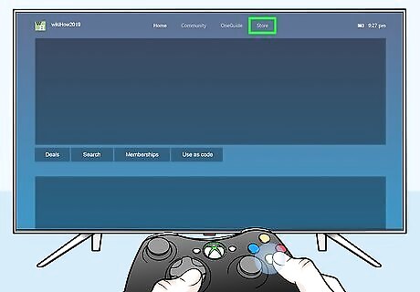Select Store from the XBOX home screen. This is in the top menu on the right side. To select it, move the analog stick over the option until it turns blue, then tap the A button.