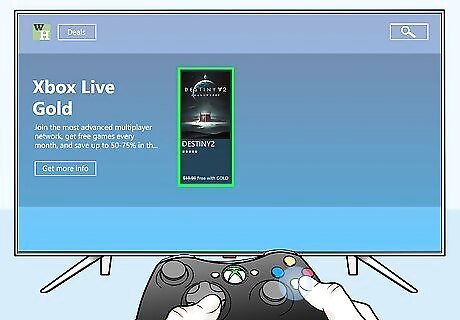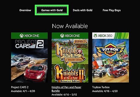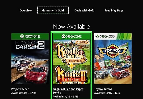 View the games in the "Xbox Live Gold" section. Free games that are available to download will say "Free with GOLD" at the bottom. Tap A to select a game. Select Get to download the game.