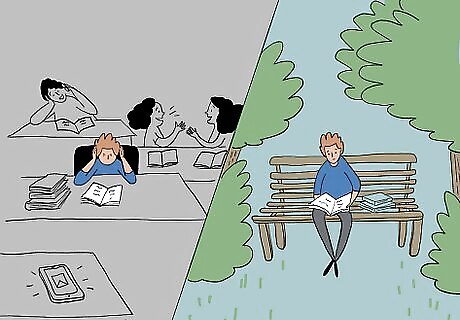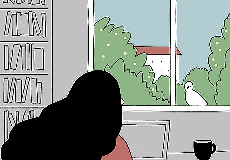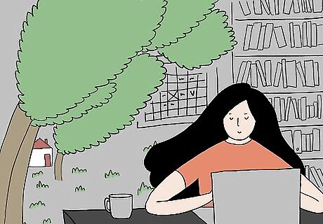 Visualize yourself in a calm, safe place. Choose a place, real or imagined, that you find tranquil and soothing. Close your eyes and imagine it, creating as many details as you can, while breathing slowly and evenly. Let out the tension in your body and let the calmness of your safe place quiet your thoughts and emotions. Your safe place could be a beach, a spa, a temple, or your bedroom—any place where you feel safe and relaxed. Think about the sounds you hear there, the things you’ll see, and even the smells and textures. If you can’t close your eyes or completely visualize your safe place, try to picture it quickly. Remind yourself of that calm, centered feeling and take a couple deep, quiet breaths. If you’re experiencing a negative emotion while you visualize, imagine it as a physical object that you can remove from your safe place. For example, your stress could be a pebble that you can throw away, imagining your stress leaving your body as you do so.
