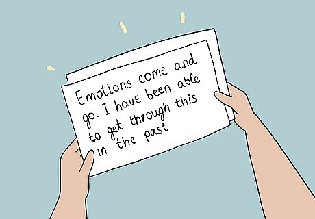 Practice repeating self-affirming mantras to yourself. The core principle of mindfulness is accepting the experience of the present moment without resistance or judgment. That’s easier said than done, but you’ll find that as you practice mindfulness techniques, they will become new “habits” that your brain adopts. When you’re in a hard situation, repeat some supportive phrases to yourself, like: I will not always feel this way, and this feeling will pass. My thoughts and feelings are not facts. I do not have to act on my emotions. I am okay in this moment, even though it’s uncomfortable. Emotions come and go, and I have been able to get through this in the past.