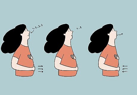 Breathe in deeply to calm yourself. When your emotions get away from you, your breathing will often get out of control as well, compounding your feelings of stress and anxiety. Cut off this spiral when you feel it happening by taking several deep breaths to calm down your mind and body. If you can, try a purposeful deep breathing technique for the most effective solution. To try this technique, first place one hand on your chest and the other below your rib cage. Inhale slowly and deeply through your nose for a count of 4. Feel your lungs and abdomen expand as you fill them with air. Hold the breath for 1 or 2 seconds, then slowly release the breath through your mouth. Aim for 6-10 deep breaths per minute. If a full 4-count is difficult for you, you can start with a 2-count and work your way up with practice. Just try to make your breaths as deep and even as you can.