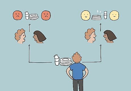Try doing the opposite of what you would normally do. If you feel yourself reacting to strong emotions in a way that’s typical for you, stop yourself. Take a moment and think about what would happen if you tried the opposite of your usual reaction. How would the outcome change? If it would become positive or productive, try that new method instead of your old one. For example, you might get bothered when your spouse regularly doesn't do the dishes. Instead of starting an argument, challenge yourself to do the dishes yourself, then politely ask your spouse if they could help. If this sounds difficult, start is by changing one small thing at a time. Instead of yelling at your spouse, tell them how you feel in a more neutral voice. If this is still too hard, walk away and take a 5 minute break. Eventually, you can work your way towards changing your reaction for good.