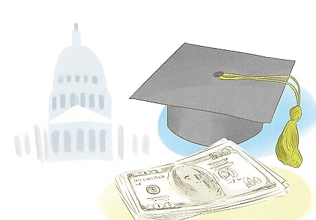 Exhaust your federal loan options. If scholarship opportunities don't pan out, you'll need to pay for as much of tuition as you can by exhausting your federal loan options. These offer competitive interest rates, compared to private loans, and are easy to defer until after college. It's in your incentive to pay them off quickly to avoid accruing extra interest, but it's also easy to win deferments in the short term while you complete your degree and post-graduate degrees and seek gainful employment.