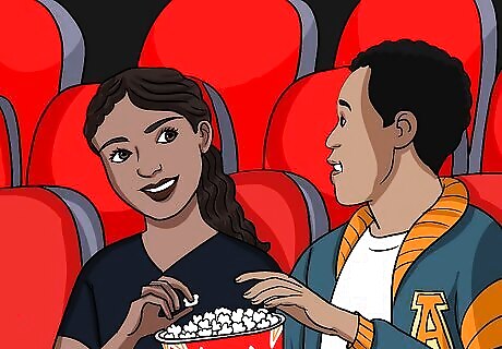 Don't get too intimate, you guys are still young. Instead of rushing into things, wait a few years for your first kiss together. Keep things low-key for now, and go to dates at places such as the movie theater or park. Remember, you have many years to explore romance and dating.