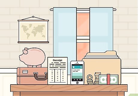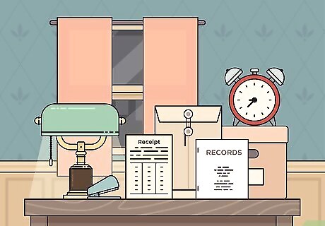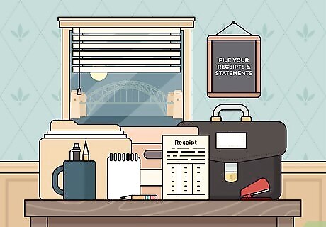 Create a filing system for receipts and statements. If you're planning on claiming deductions, you'll need receipts and statements to back them up. Set up a simple filing system, either digitally or with paper files, to file your receipts and statements by category. Separate personal and business expenses. If you're using a paper filing system, using separate drawers for personal and business expenses ensures that they don't get mixed up. If you're filing digital copies of receipts and statements, make at least one good backup in case something happens to your computer. A cloud backup is a good option. If you make a backup on a thumb drive, update it at least once a week.