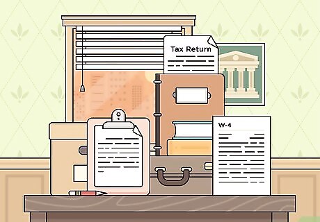 Use your last tax return to determine what documents you need. Absent any major changes to your employment, you'll likely need many of the same forms and documents in the coming year as you needed last year. Therefore, you can use last year's tax return as a blueprint to gathering the paperwork you'll need. Go through your last tax return and make a list of the documents you used. If you claimed any deductions, make a note of the receipts or other records you needed to back up those deductions. If you anticipate any changes relative to your last tax return, make a note of those as well. For example, if you're planning to get married in the coming year, you would make a note that your filing status is going to change. Knowing that, you would also know that you might need to change your withholding at work.