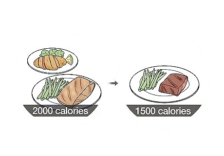 Consume fewer calories than you use if you need to lose weight. For most people, the best way to lose weight is through a combination of increasing your physical activity and decreasing the quantity of calories you eat. Talk to your doctor about how many calories you should be eating each day based on factors like your age, sex, current weight, and activity level. Most people can lose 1–2 pounds (0.45–0.91 kg) per week by cutting roughly 500-1,000 calories from their regular daily diet. However, your specific needs will depend on factors like how many calories you already eat and how much you exercise every day. Never consume fewer than 1,200 calories a day without consulting your doctor or a registered dietitian first. Eating fewer than 1,200 calories per day long-term can have a negative impact on your health. If your doctor recommends cutting calories from your diet, you may find it helpful to keep a food diary to track how much you’re eating each day. Consult the nutrition information label on foods you eat or use a food calorie calculator like the one on the Calorie Control Council website to determine how many calories are in each meal.