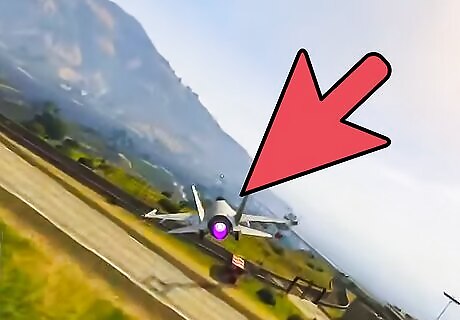 Avoid your pursuers. If you're still inside the base once the 3 minutes has lapsed, other Lazer jets will start coming after you. To avoid these attackers, simply fly all the way up as far as your aircraft can reach. The pursuing jets will eventually stop chasing you and de-spawn once you're high enough. Congratulations! You just got a military jet in GTA Online.