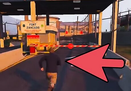 Enter the military base. Just like with previous versions, military bases are restricted areas. The moment you set foot inside, your wanted level will rise up to 5 stars. Head towards the gates of the fort at full speed and ram through the gates. This will make it harder for the guards to shoot at you, increasing your chance of survival.