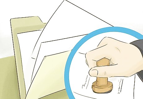Have the application notarized. After you have completed the application, you must have it notarized. Notaries can be found at your local courthouse, county clerk’s office, or at most large banks. To find a notary near you, you may also use the locator at the website for the American Society of Notaries. Be sure to bring sufficient personal identification to show the notary. A valid driver’s license or passport should suffice.