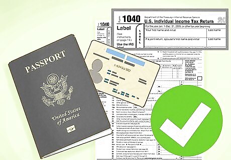 Collect the necessary documentation. You will need to have a federal income tax return and personal identification. A passport is sufficient identification. If you don’t have a passport, you will need 2 other types of identification. Other accepted IDs include: current National Identification Document, U.S. driver’s license, birth certificate, state I.D., voter registration, visa, U.S. Citizenship and Immigration services photo I.D., medical (for dependents only), school records.