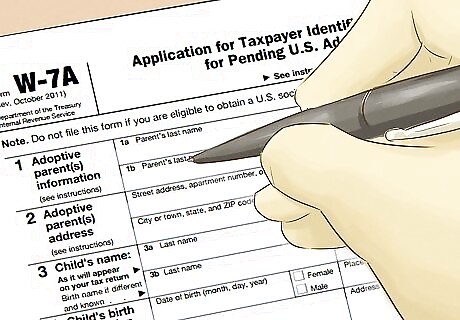 Fill out a W-7A form. The form is available on the IRS website: http://www.irs.gov/pub/irs-pdf/fw7a.pdf. You will need to provide information the name of the adopting parents, their address, their Social Security numbers, the child's name, the date and place of their birth, the name of the placement agency, and its address.