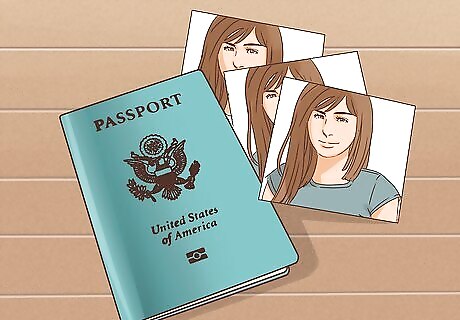 Get passport photos taken. You will need to send two to three passport-sized photos with your application. Many local drug stores, photo centers and postal carriers can take passport photos for you and develop them very quickly. Some photobooth also do passport-sized photos, which is generally cheaper and more instantaneous. You should dress simply for passport photos, and be sure that your hair is out of your face. You are not supposed to smile for them; try to keep your expression neutral.