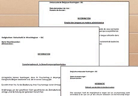 Fill out your language form. The Belgian government only offers you a reply to your visa application in the official languages of their country. As part of your application, you must complete a form that designates which of those languages you would like to receive your response in (German, Dutch, or French). Fill out the form with your full name as it appears on your passport, pick your language of choice, and then sign and date the bottom. The language form is available here: http://unitedstates.diplomatie.belgium.be/en/visa-belgium/higher-education-students